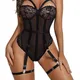 Red Teddy Lingerie with Garter Belt One Piece Lingerie Naughty Strappy Lin..More