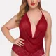 Turquoise Blue Sexy Lace Halter Sleep Romper Nightwear For Women